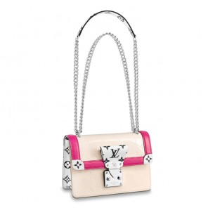 Introducing the LV Wynwood, a modern chain bag that unites superb craftsmanship and a fashion-forward attitude. Made from Monogram Vernis patent leather, it is detailed with hardware inspired by Louis Vuitton trunks, and the black-and-white Monogram canvas trim featured in the Summer 2019 capsule. A perfect day-to-evening piece, it is just the right size to hold essentials.