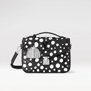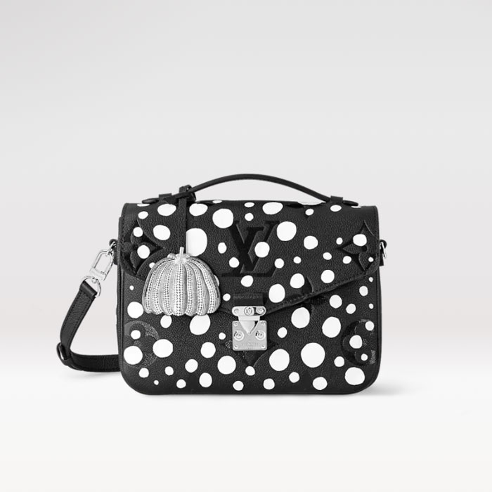 For the major new Louis Vuitton x Yayoi Kusama collection, the LVxYK Pochette Métis features two of the celebrated Japanese artist’s visual signatures: psychedelic dots and pumpkins. Fine black cowhide embossed with the House’s emblematic Monogram pattern is enlivened with vivid fuchsia dots. And the removable charm is inspired by the stylized pumpkins depicted in many of Kusama’s paintings and sculptures. A stylish bag that makes an artistic statement.