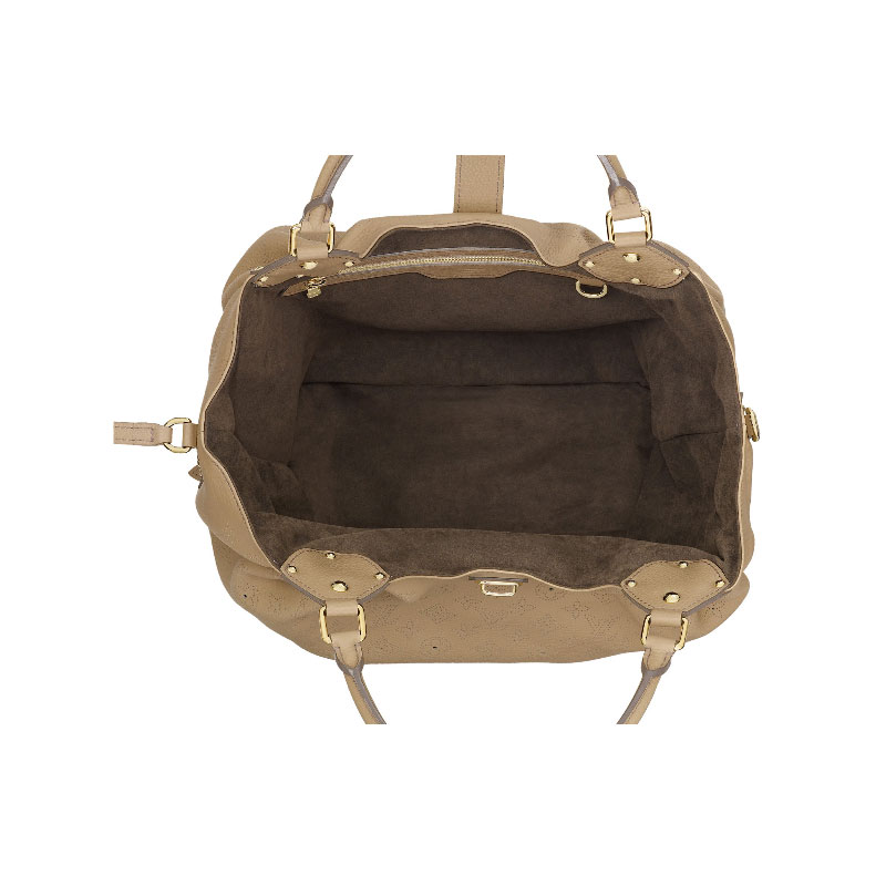 Styled in exceptionally supple leather, the Mahina L medium sized bag associates elegance and modernity with attitude by reinterpreting the Monogram through an innovative perforation technique.