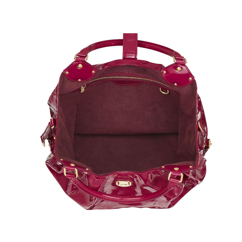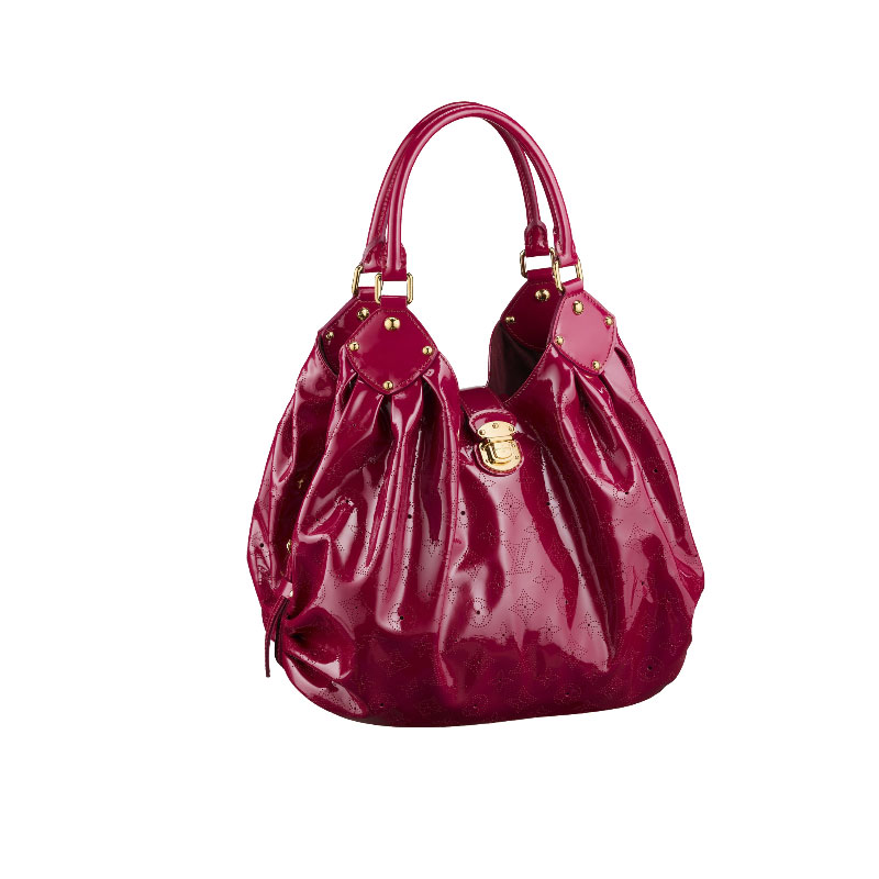 The Surya range is named after the Hindu Sun God because of its radiance. This L bag, in supple, discreetly perforated Monogram patent leather, has sophisticated pleat work for body friendliness. The Surya leather is qualitative and lends itself to play with feminine details as well as an array of glossy and bright colors.