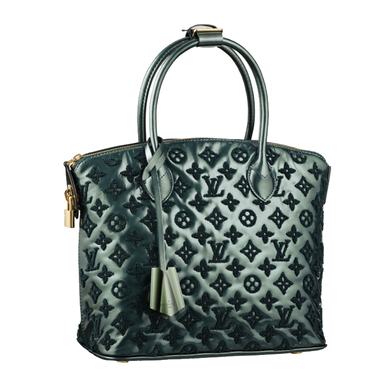 The iconic lockit has been beautifully reinterpreted in bold monogram fascination.soft lambskin,delicate matt embroidery and glossy patent leather combine to create am cxquisite blend of textures.