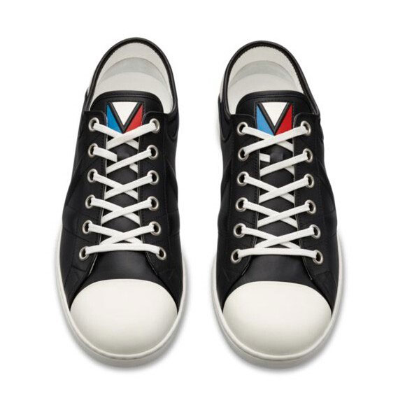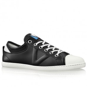 This sleek sneaker in plain calf leather and textile features a distinctive padded V detail on the side. This, and the V Gaston label, were inspired by the signature historically used by Gaston-Louis Vuitton to personalise his belongings.