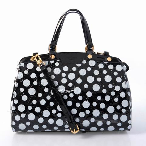 The iconic shape of the Brea GM has been playfully reinterpreted in exquiste monogram vernis dots infinity. Bold patent leather trimmings are a refined complement to its captivating pattern.