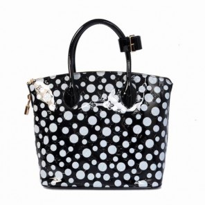 The iconic shape of the Lockit MM has been playfully reinterpreted in exquiste monogram vernis dots infinity. Bold patent leather trimmings are a refined complement to its captivating pattern.