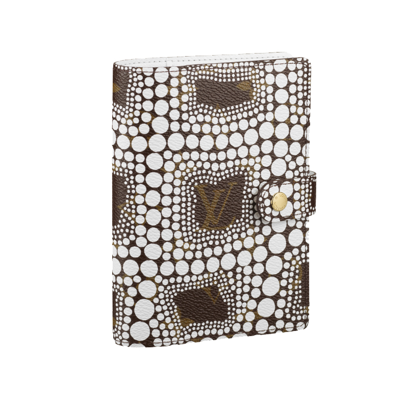 An indispensible accessory for any woman's bag - whether used as a diary,notebook or address book - the Samll Ring Agenda Cover is given a bold twist with Yayoi Kusama's Monogram Town design.