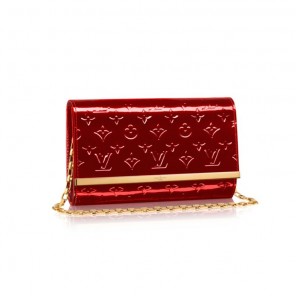 In rich colors and glossy Monogram Vernis leather, this fashionable clutch can be carried in different ways thanks to its golden chain and removable long leather strap. Its flap, equipped with a secure magnetic closure, is highlighted by a sophisticated Louis Vuitton-engraved metal plaque.