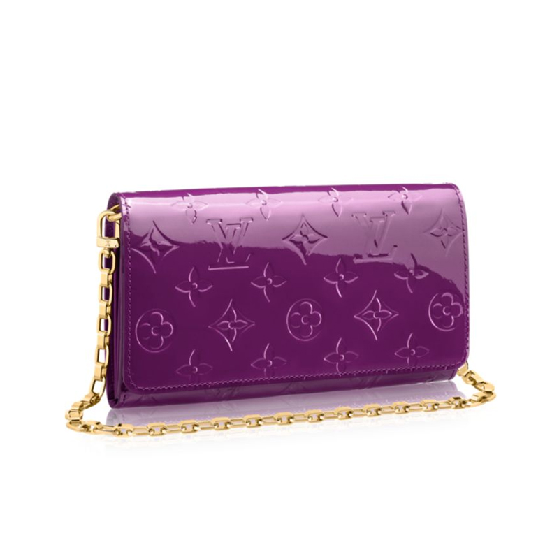 In rich colors and glossy Monogram Vernis leather, this spacious wallet can be transformed into a glamorous shoulder bag or clutch thanks to its removable golden chain. Its functional interior holds all everyday essentials.