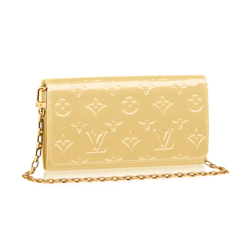 In rich colors and glossy Monogram Vernis leather, this spacious wallet can be transformed into a glamorous shoulder bag or clutch thanks to its removable golden chain. Its functional interior holds all everyday essentials.