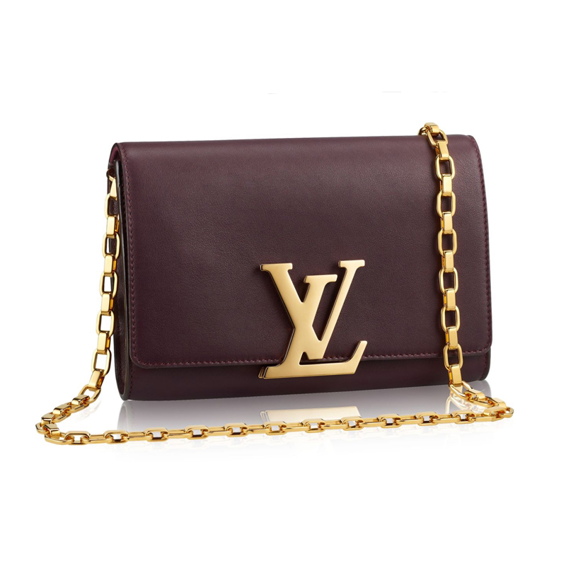 The Chain Louise exudes sophistication in beautiful calfskin box leather. Adding a golden chain to its minimalist shape means it can be carried on the shoulder at any function, day or night