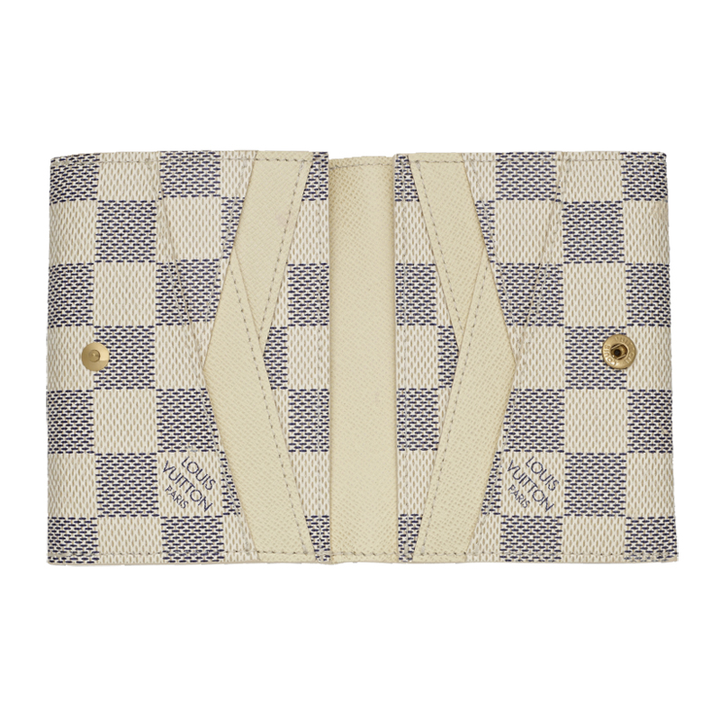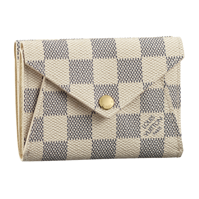 A beguiling celebration of impeccable craftsmanship.the compact wallet origami is sophisticated and feminine. Delicate detailing. refreshing damier azur canvas and rich golden brass add to its charm.