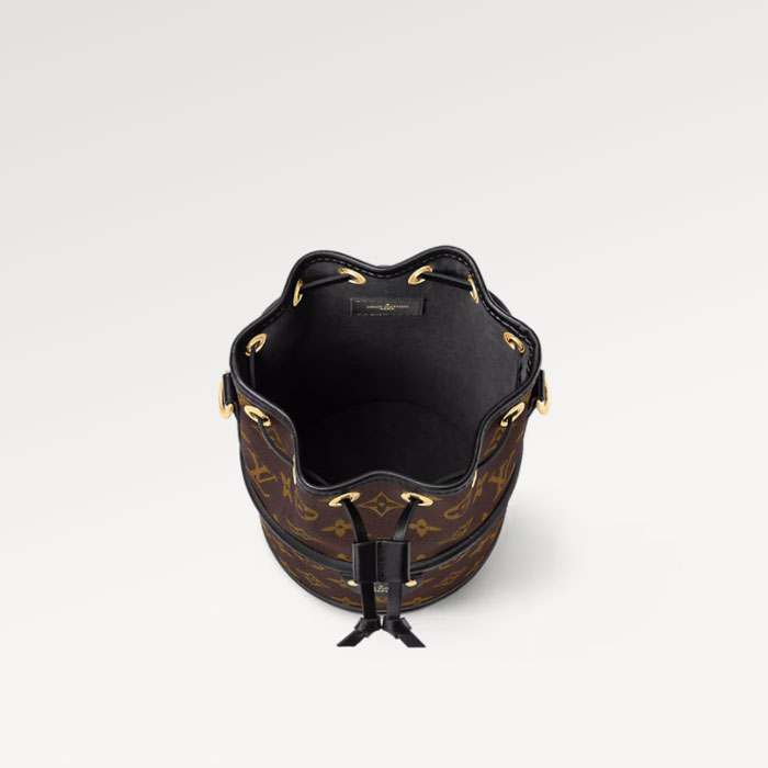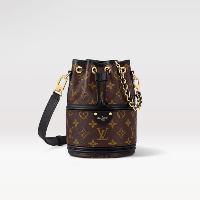 The Canoe bucket bag in Monogram canvas is a fusion of two iconic Louis Vuitton models: the historic No茅 and the fashionable Cannes. With its small proportions, Cannes-inspired molded bottom, and No茅 drawstring, it perfectly combines style with functionality. The braided chain and leather strap, both detachable, give carry options.