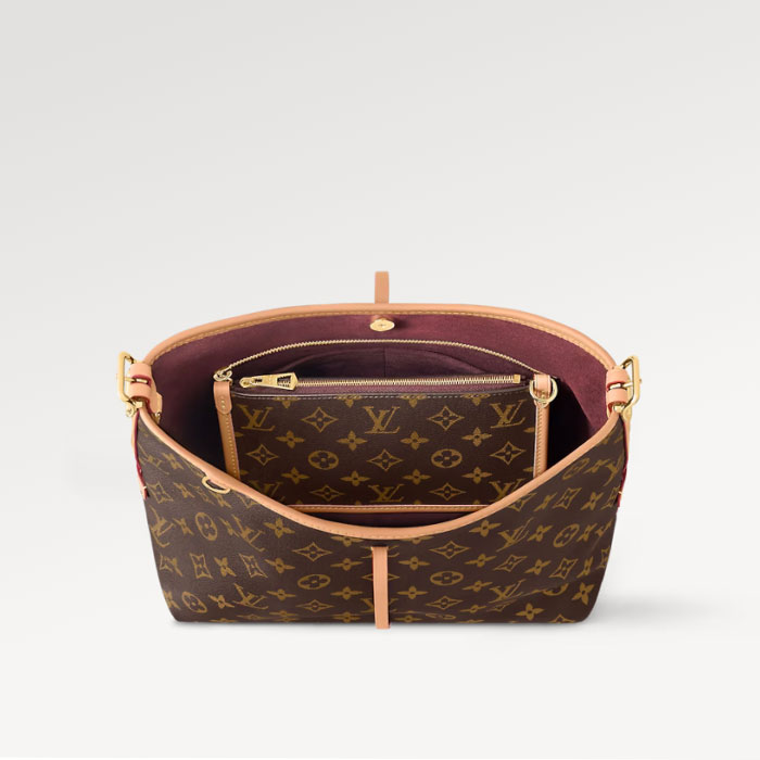 Combining allure with body-friendly design, the CarryAll PM handbag in Monogram canvas with natural leather trim is a go-everywhere city bag. Great storage capacity and a smartly designed interior, with two large inside pockets, makes it practical. A detachable zipped pouch, also in Monogram canvas, is attached to the bag by a leather strap.