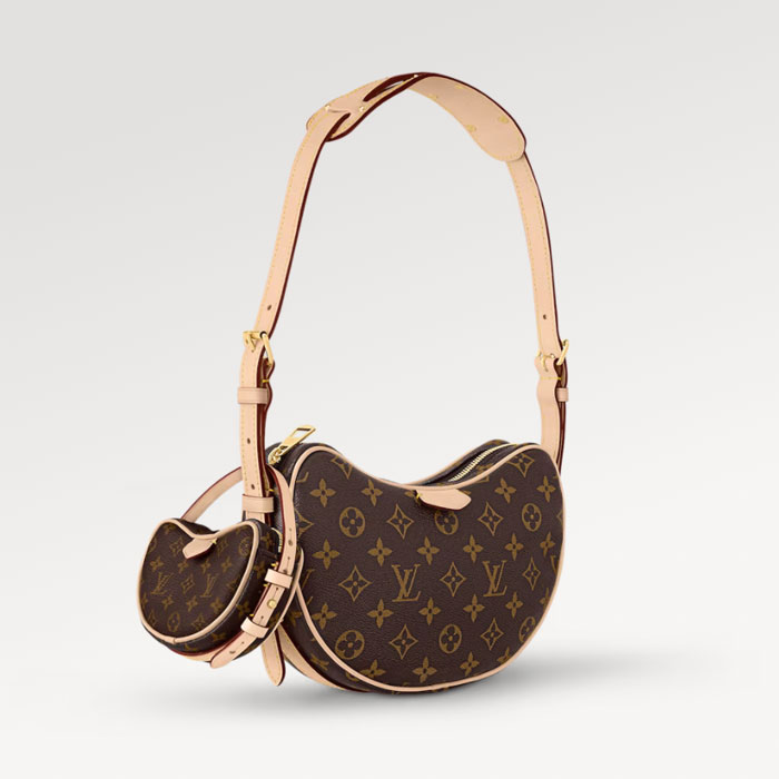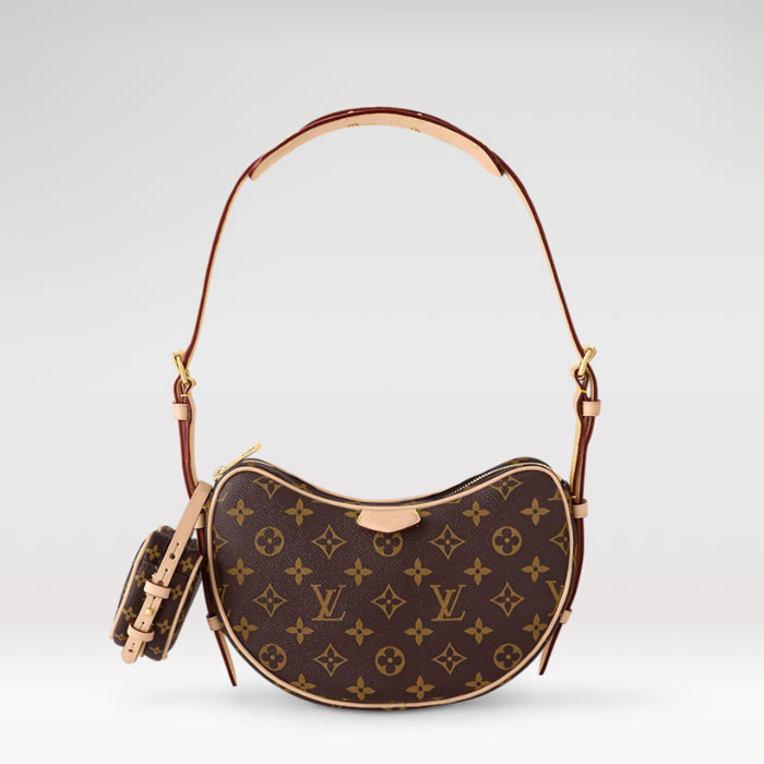 The Croissant MM handbag is made from Monogram coated canvas with natural cowhide-leather trim and comes with an adorable miniature version of the same bag. Thanks to its removable and adjustable strap, this versatile bag can be worn cross-body, short- or long-shoulder, and with or without the matching mini bag.