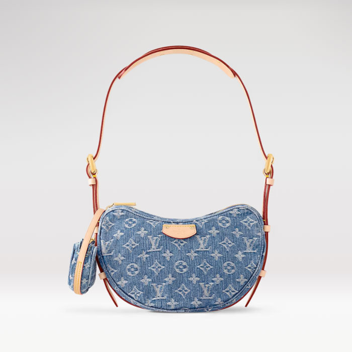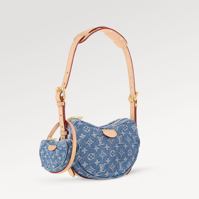 Made from certified-organic cotton, Monogram Denim canvas brings casual sophistication to the Croissant MM handbag. With its detachable strap that adjusts on both sides, the versatile Croissant can be worn cross-body or on the shoulder, with or without the mini croissant attached. Each bag comes with a matching mini version of the Croissant that is four times smaller than the original.