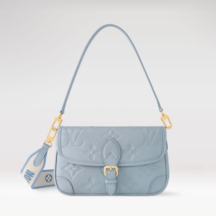 A study in subdued elegance, this Diane satchel bag is made from embossed Monogram Empreinte leather with gold-color hardware, including the front buckle. The colorway perfectly complements the subtle embossing. It comes with a detachable leather strap for shoulder or hand carry, as well as a removable cross-body strap with a woven "Louis Vuitton.”