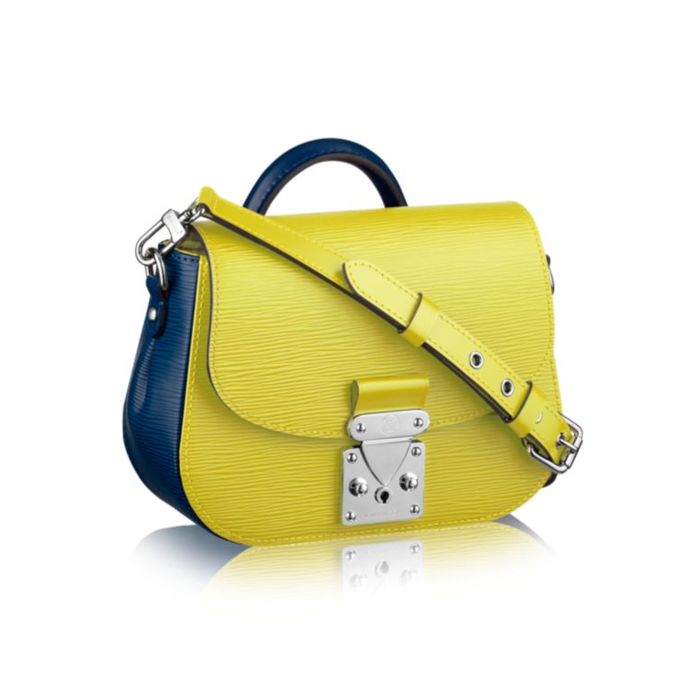 A glamorous blend of bicolored Epi leather and grained Epi leather, the Eden is a sophisticated addition to any wardrobe. An elegant vintage-inspired silver S-lock completes its eclectic look.