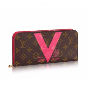 A bold V motif inspired by a Louis Vuitton ad from the 1920s adorns the stylish Insolite wallet in Monogram canvas. The double zipper opening, with leather zip pulls, allows an easy access to coins without opening the wallet completely.