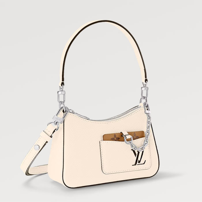 The Marellini handbag shares the sporty-chic signatures of the larger Marelle model, but in a charming mini format. Fashioned from the Maison鈥檚 classic Epi leather, this playful and versatile piece features a detachable round coin purse; a small mirror fits into the front pocket, hooked to the bag by a stylish silver-finish chain.