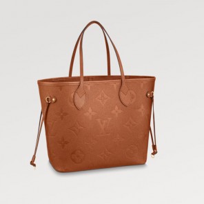With this Neverfull MM carryall in Cognac Brown cowhide leather, Louis Vuitton brings a new, natural aspect to a flawless classic. Embossed into the supple leather, the Monogram Flowers and LV Initials give the bag an understated charm. The leather handles slip comfortably over the shoulder or arm. Inside is a removable matching zipped pouch.