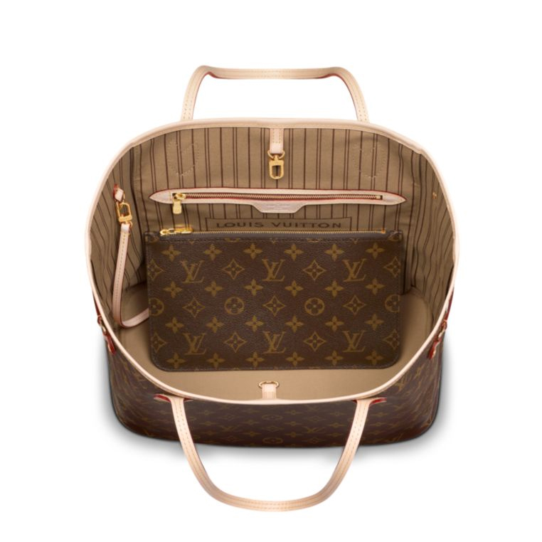 Louis Vuitton celebrates the Neverfull with a new version of this iconic bag. Look inside to discover a host of refinements. The redesigned interior features a fresh textile lining and heritage details inspired by House archives. Best of all, the removable zippered clutch can be carried separately as a chic pochette or serve as an extra pocket. Linings in a selection of bright shades lend a pop of vivid color to the timeless Monogram canvas.