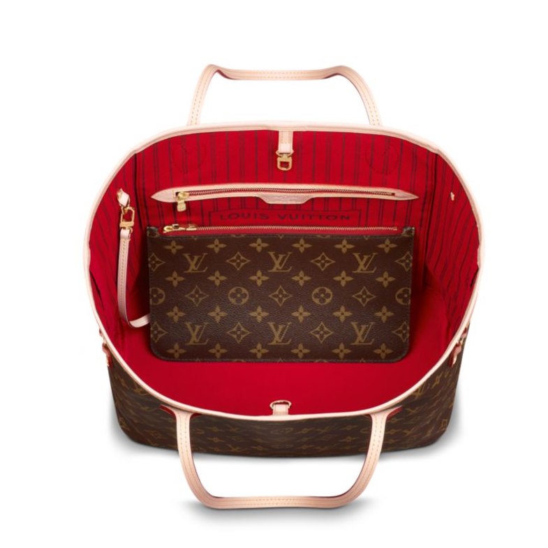 Louis Vuitton celebrates the Neverfull with a new version of this iconic bag. Look inside to discover a host of refinements. The redesigned interior features a fresh textile lining and heritage details inspired by House archives. Best of all, the removable zippered clutch can be carried separately as a chic pochette or serve as an extra pocket. Linings in a selection of bright shades lend a pop of vivid color to the timeless Monogram canvas.