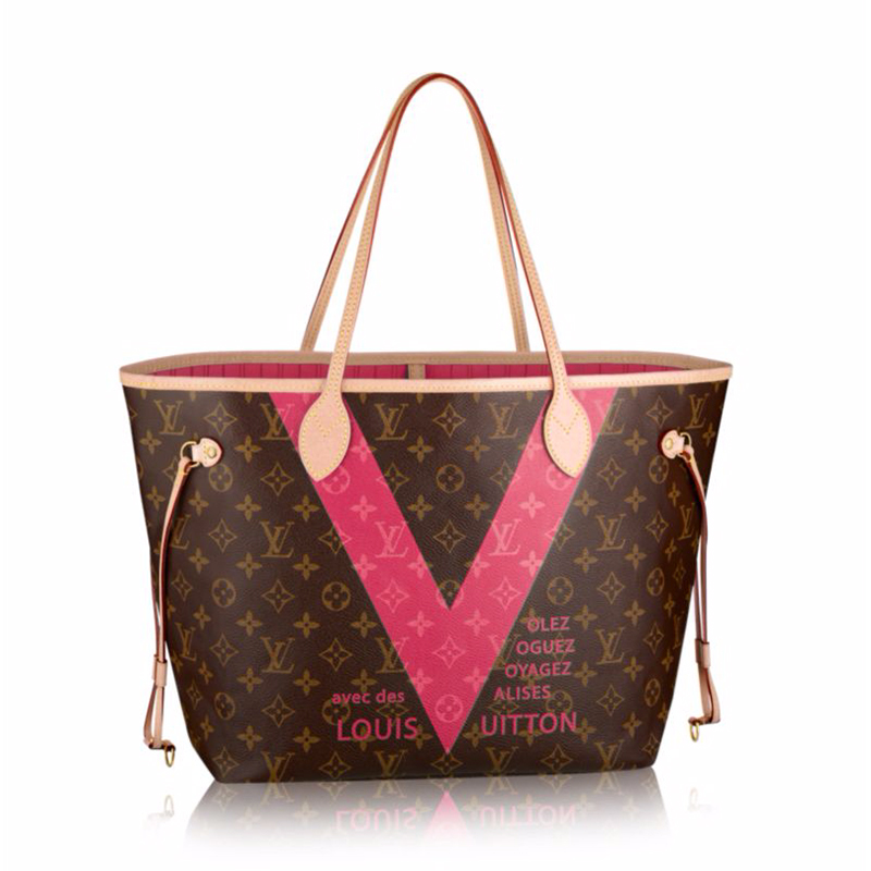 The Neverfull MM Monogram V is inspired by a famous Louis Vuitton ad from the 1960’s. Monogram canvas easily mixes with the stylish “Volez, Voguez, Voyagez avec les Valises Louis Vuitton“ print.