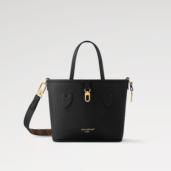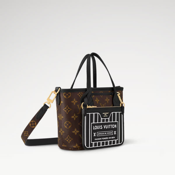 This season, the iconic Neverfull handbag is made reversible. The Bandouli猫re Inside Out BB edition is crafted from signature Monogram canvas with grained leather on the reverse. It comes with a removable zipped pouch that can be used on its own, or attached as an exterior pocket. Gleaming gold-toned hardware adds the final touch. It also features a removable strap that allows for crossbody carry.