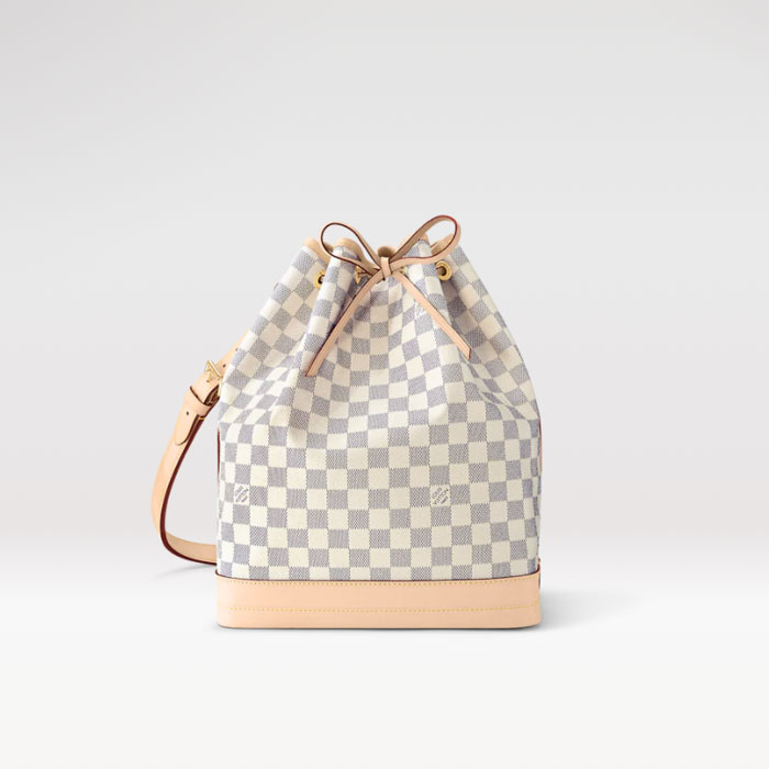 The Noé bucket bag harks back to a design from 1932. A Champagne producer asked Gaston-Louis Vuitton to develop a sturdy, stylish bag in which he could transport five bottles of bubbly. This model in body-friendly Damier Azur canvas retains key features of the original – the iconic shape, generous volume, drawstring closure – but is made for modern life. The leather strap adjusts for comfortable shoulder wear.