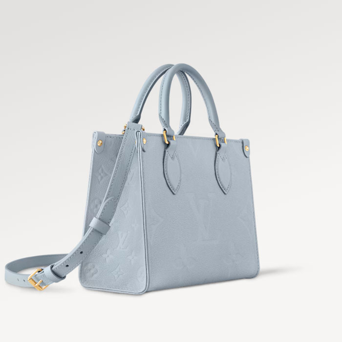 Grained Monogram Empreinte leather in a fresh colorway, embossed with the Giant Monogram, gives this OnTheGo PM handbag understated charm. This compact version of the original OnTheGo, itself inspired by Louis Vuitton鈥檚 famous Sac Plat from 1968, can fit an iPad Mini. Top handles and an adjustable removable strap offer carry options