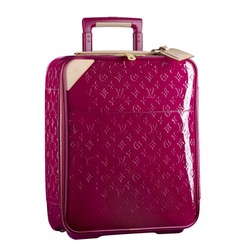 Add vibrant colour to any trip with the Pegase 45 in glossy Monogram Vernis. Exquisite embossed patent leather and silent stable rolling system to make it functional yet feminine.