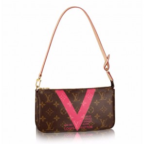 The Pochette Accessories Monogram V takes inspiration from the popular “Volez, Voguez, Voyagez” ads of the 1960s. The eye-popping V comes in a fresh, elegant design. A playful pochette to take from day to night.