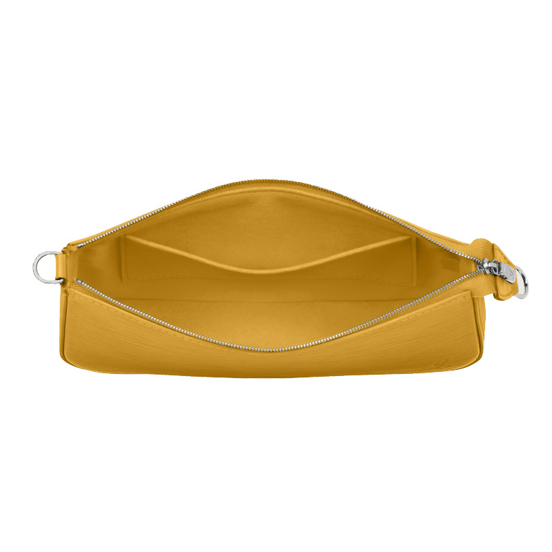 Dynamic, colourful Epi leather adds glamour to the Pochette Accessoires NM. The perfect size for any day or night event, it is sufficiently accommodating to carry a Zippy wallet with ease.