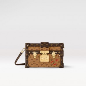 Every detail of the Petite Malle handbag is inspired by the history of Louis Vuitton trunks: the shape, the iconic Monogram canvas, the gold-tone lock and fittings – even the sheepskin lining reprises a classic House motif. Impeccably crafted, with smooth calfskin trim, this covetable “little trunk” travels easily from day to evening. It can be carried as a clutch or attached to the adjustable strap for cross-body wear.