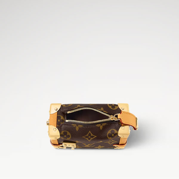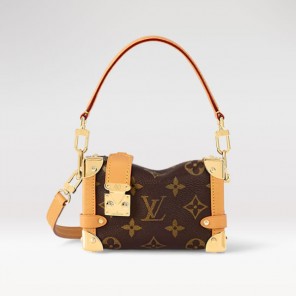 The Pico Side Trunk draws inspiration from Louis Vuitton's travel heritage. Crafted from Monogram canvas with natural leather trim, it features the iconic S-lock and metal corners of the House's historic trunks. These heritage details are combined with modern functionality: a secure zip closure, a removable top handle and a removable, adjustable shoulder strap.
