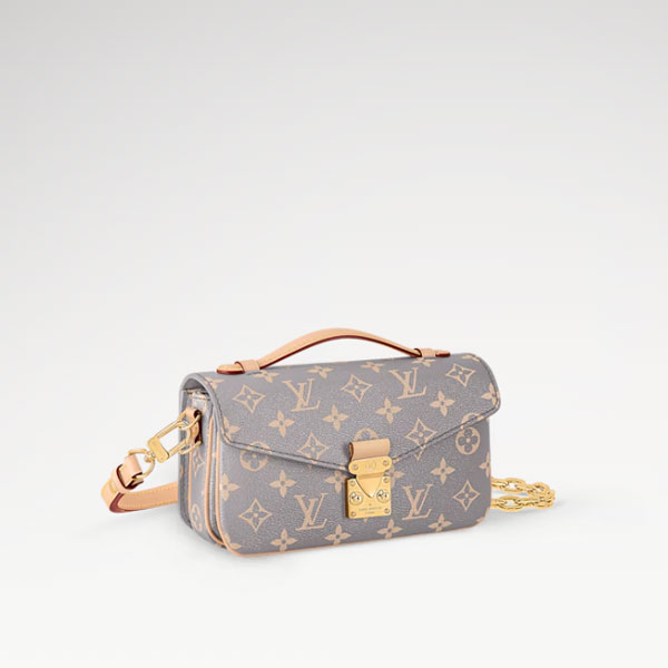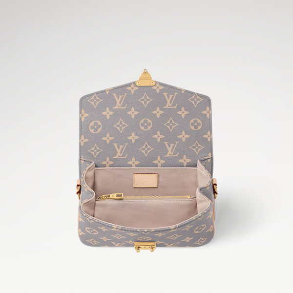 The elegant Parisian color palette of the Pochette M茅tis East West is designed to complement the RTW Fall-Winter 2024 collection. This smooth combination of shades is inspired by the House's historic trunks, and depicted on signature Monogram coated canvas trimmed with smooth, natural cowhide leather. The gold-toned S-lock closure adds to its sophisticated appeal.