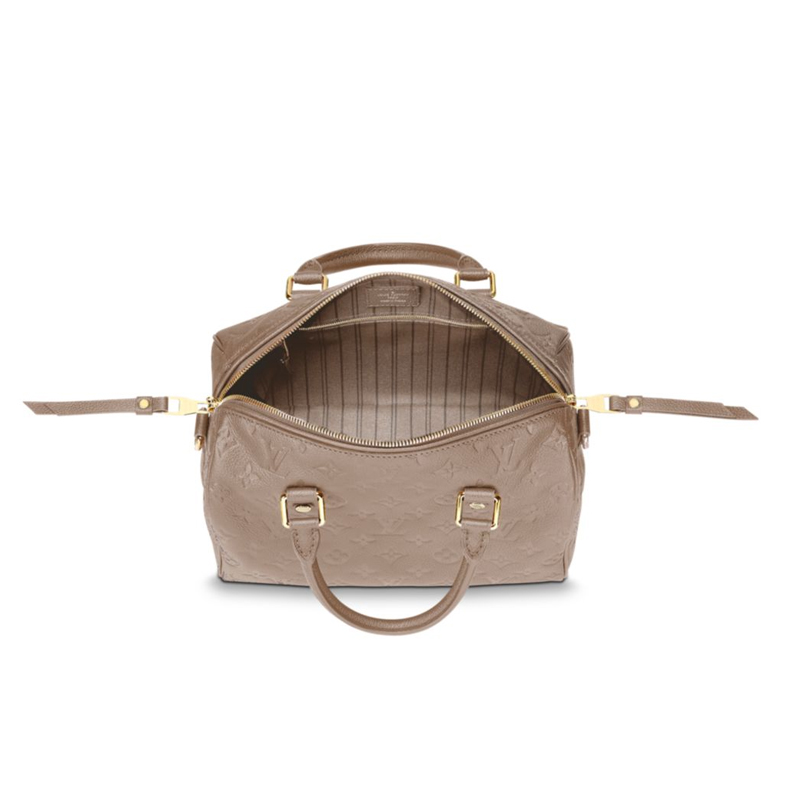 The Speedy Bandouliere 25, the Icon of the House, has been reworked in a sophisticated way that perfectly matches with the spirit of the line. It is a timelessly elegant bag for the fashionable woman. The discreet embossing on its supple Monogram Empreinte leather adds an extra touch of refinement