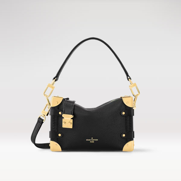 Crafted from grained calfskin leather with a gold-color S-lock and corners, the Side Trunk PM takes its inspiration from the House鈥檚 vintage trunks. A detachable leather handle and a removable and adjustable leather strap give carry options. The Side Trunk fits a wallet, large smartphone, keys, and lipstick.