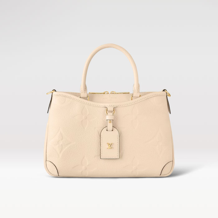 With its more compact format and multiple zipped compartments, this Trianon PM handbag in embossed Monogram Empreinte leather is the perfect alternative to the traditional tote. Its V-cut lines are inspired by the emblematic Louis Vuitton Pallas bag. Two top handles, as well as a detachable shoulder strap, make it comfortable to carry.