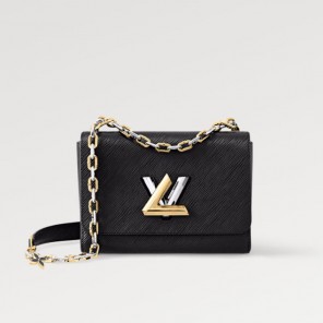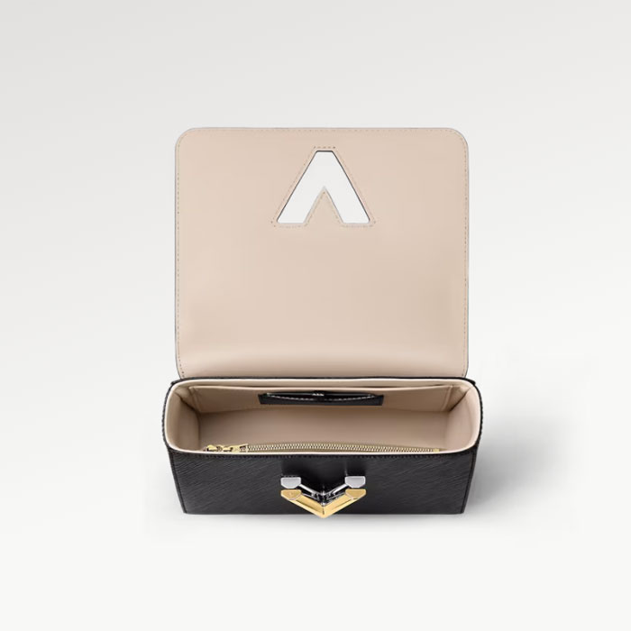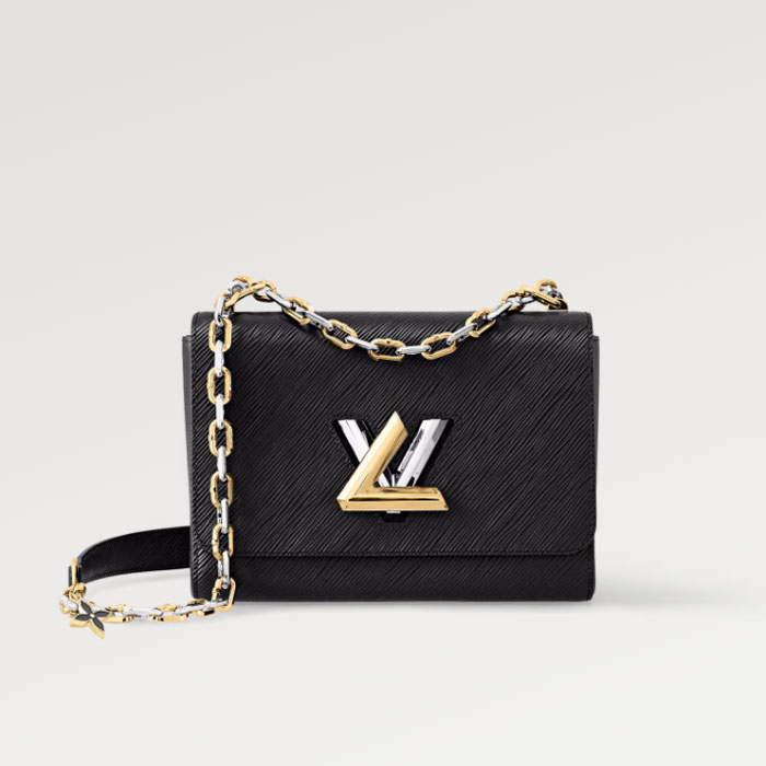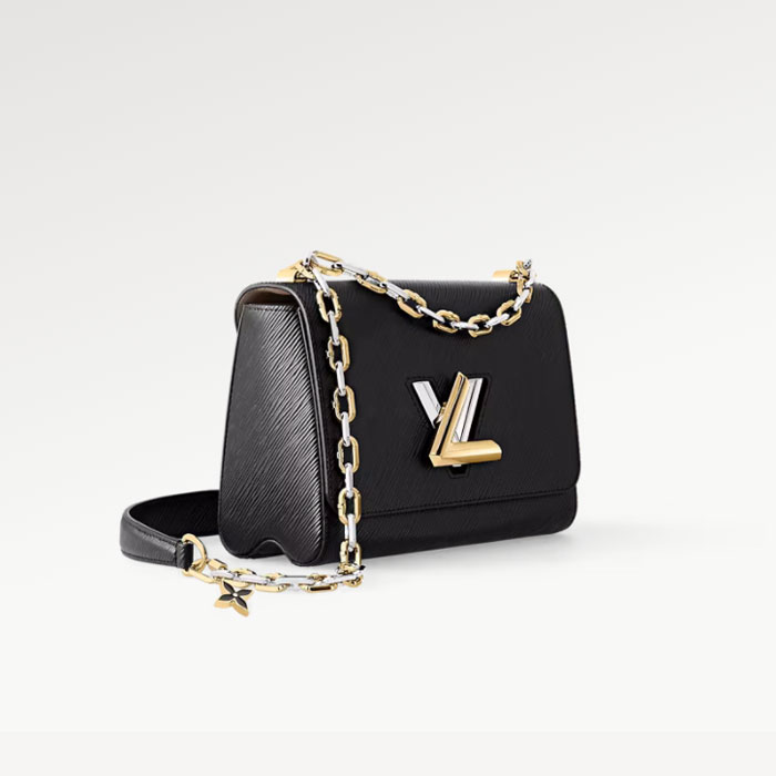 Made from grained Epi leather, this Twist MM hand bag has a faceted chain adorned with an enamel Monogram Flower charm. Thanks to discreet LV hooks, the chain offers multiple carry options: hand and elbow, short and long shoulder, or cross-body. The chain It can also be removed, allowing short shoulder carry with its leather strap.