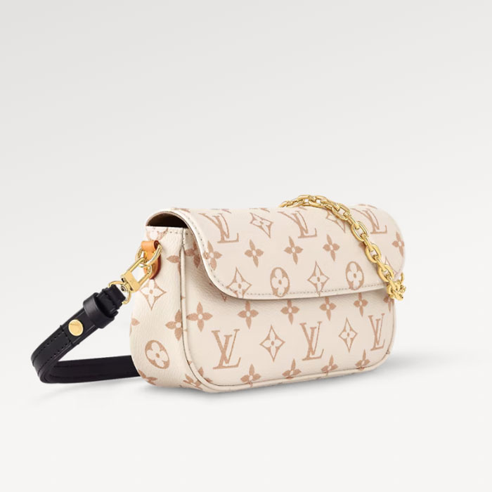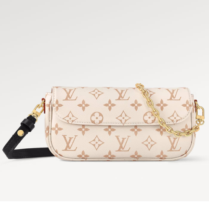 The Ivy wallet on chain comes in Monogram Dune canvas, which was seen at Louis Vuitton's Cruise 2024 fashion show. This on-trend mini bag has a magnetic flap, which lifts to reveal a main compartment with space for everyday essentials. Its removable chain and removable, adjustable leather strap offer multiple carry options.