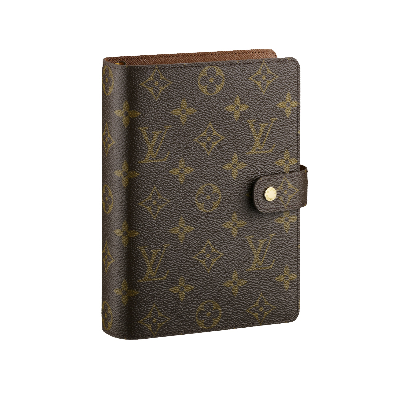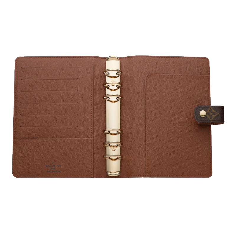 - Monogram canvas, cross grain leather lining- Press stud closure- Six-ring binder, separated into two groups of three, six credit card slots, two inside compartments- Agenda refill available separately