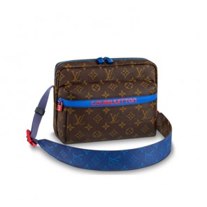 Featuring the new technical, sports-inspired feel unveiled by Kim Jones at the 2018 Spring-Summer Show, this Messenger Monogram Outdoor  mixes classic Monogram coated canvas with sports webbing, scuba zips, cording and blue and green colored metallic pieces. Easy and functional crossbody shape.