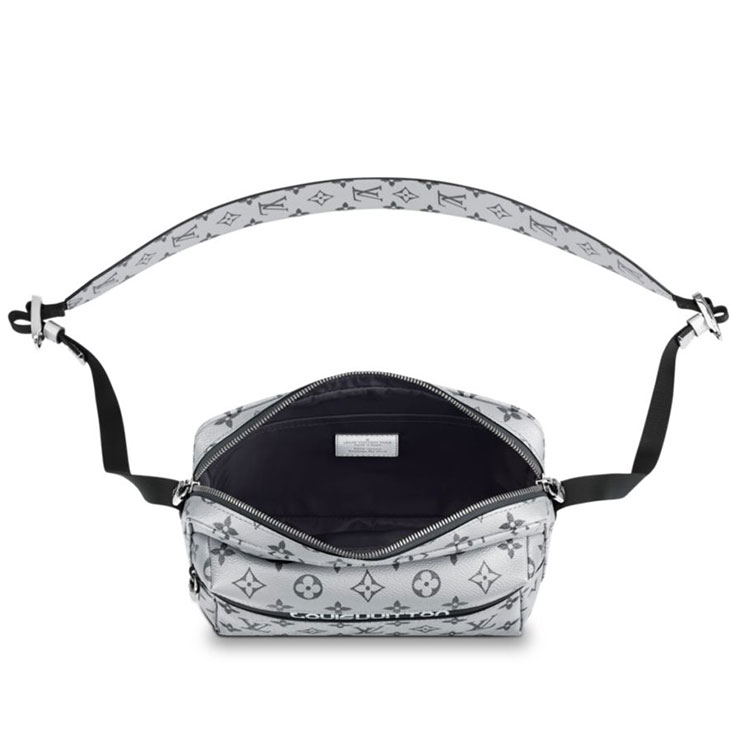 Designer Kim Jones’ new take on the Messenger PM is a sports-inspired bag that mixes LV coated canvas with sports webbing, scuba zips, cording and colorful hardware. This Messenger PM is ideally sized for business use.