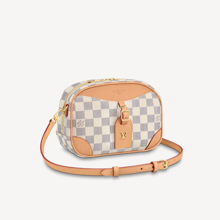 For the Spring-Summer 2021 Collection, the compact Deauville Mini handbag has been reinterpreted in bright Damier Azur canvas. Small, lightweight and very body-friendly, this vintage-inspired bag is perfect to accessorize any outfit. The removable and adjustable leather strap enables clutch, shoulder or cross-body carry.