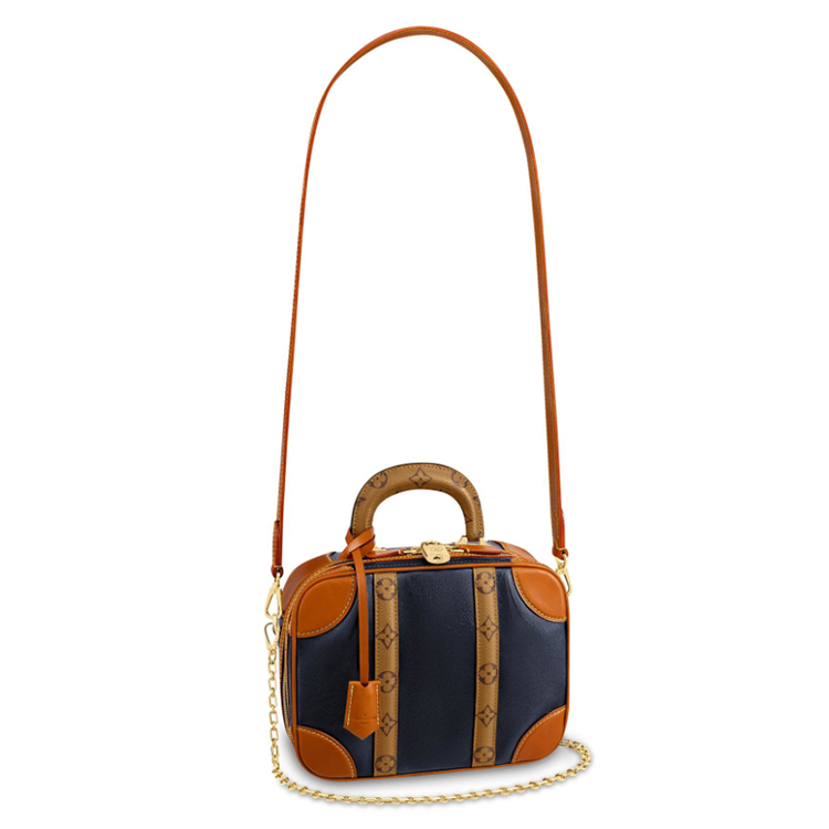 Smooth calf leather, glossy aged cowhide and touches of Monogram Reverse canvas combine in this Mini Luggage handbag, introduced on the Spring-Summer 2019 runway. It is a small-scale model that packs a big fashion punch, with refined details inspired by Louis Vuitton鈥檚 travel legacy. The top handle, strap and chain provide a variety of stylish carry options.