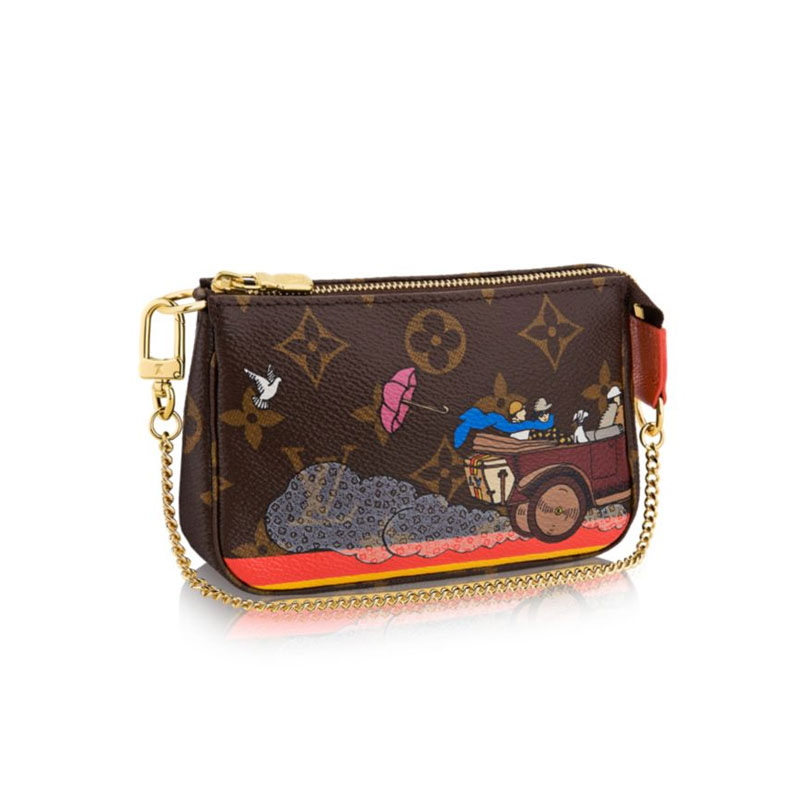 Ideal gift, this witty and colorful limited edition, inspired by an historical advertisement from 1921, pays tribute to Louis Vuitton's travel heritage. The Mini Pochette Accessoires in Monogram canvas can hold everyday essentials. It can be attached to a bag or carried on its own.