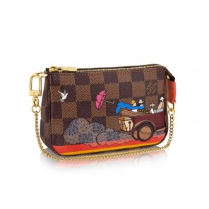 Ideal gift, this witty and colorful limited edition, inspired by an historical advertisement from 1921, pays tribute to Louis Vuitton's travel heritage. The Mini Pochette Accessoires in Damier Ebene can hold everyday essentials. It can be attached to a bag or carried on its own.