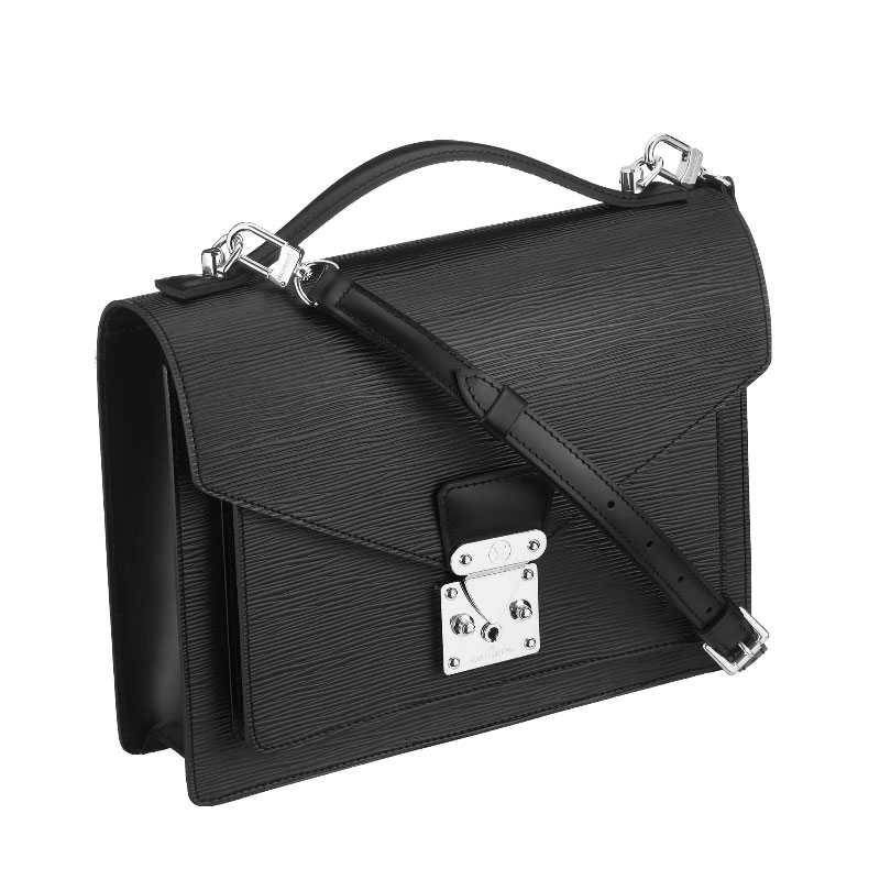 The Monceau city bag can be carried on the shoulder or hand-held. The S-lock closure opens to reveal a spacious compartment with gusseted sides to hold papers, keys and cell phone.
