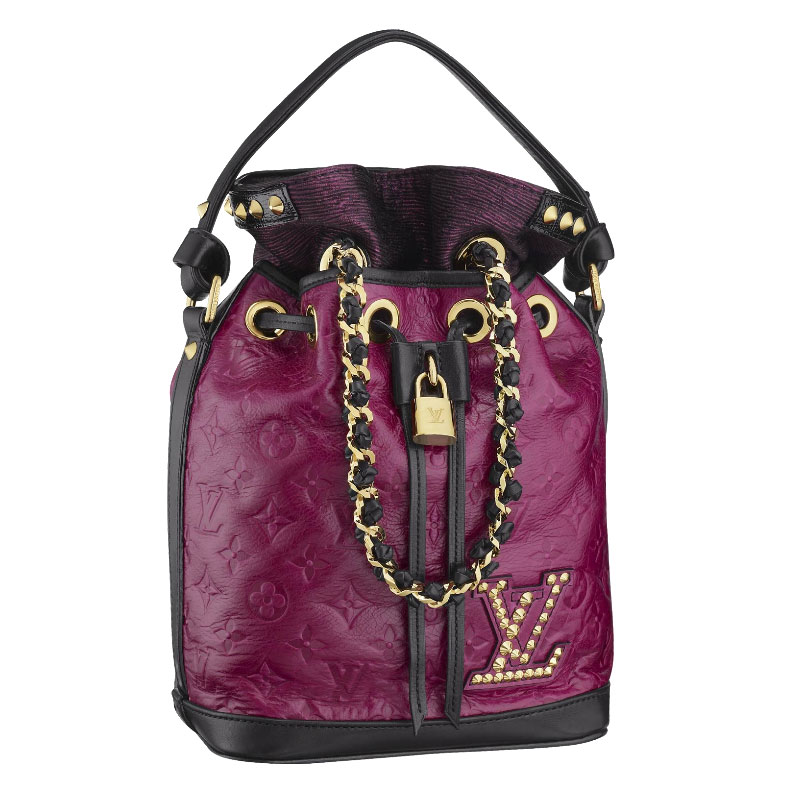 This innovative re-interpretation of the iconic Noe is two distinctive bags in one. A bright calfskin leather bag, with a shimmering pochette which can either sit inside it or be carried separately.