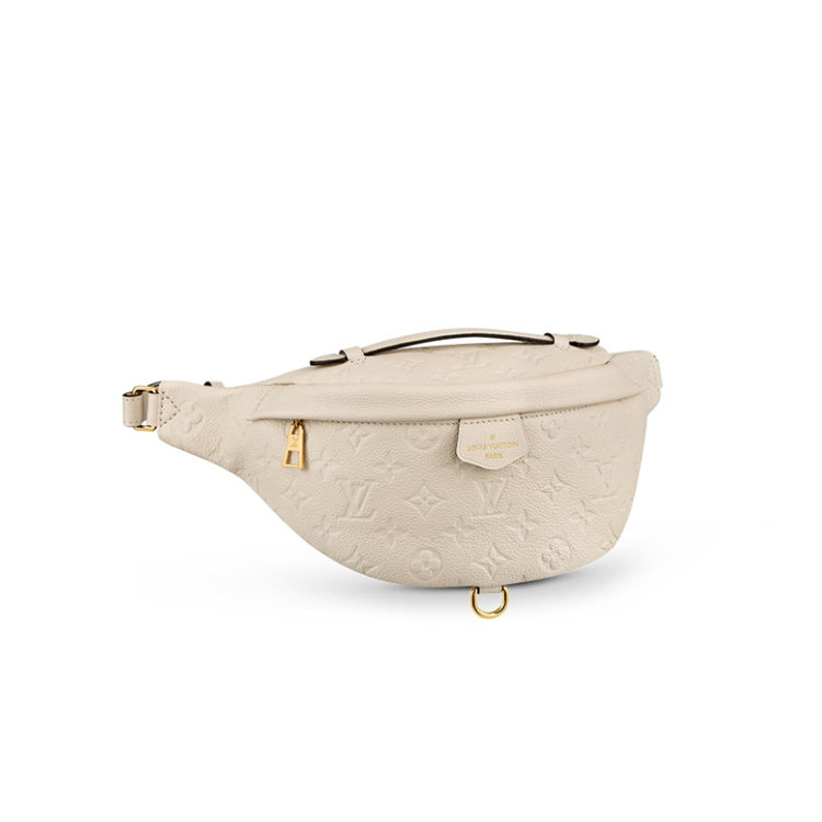 This smaller version of Louis Vuitton鈥檚 classic Bumbag is made from supple Monogram Empreinte leather embossed with the Monogram motif. This practical bag offers multiple carry options thanks to its top handle and adjustable strap: on the shoulder, cross-body, on the waist, and by hand.